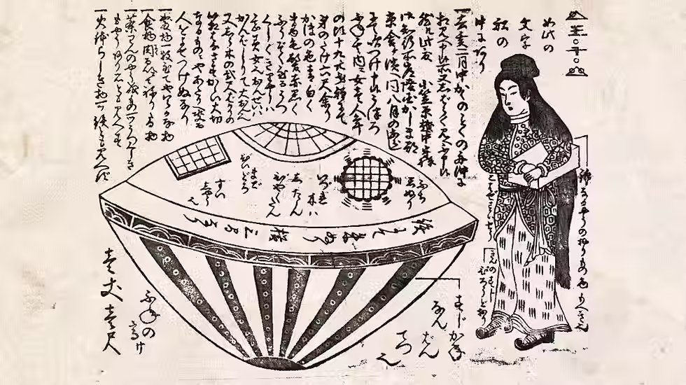 Nelle acque al largo della provincia di Hitachi, alcuni pescatori giapponesi assistettero a qualcosa che sfidava ogni logica dell'epoca. Una strana imbarcazione sferica galleggiava solitaria sul mare, portando a bordo una giovane donna dai capelli rossi che non parlava giapponese. Quello che accadde quel giorno è diventato uno dei misteri più affascinanti del folklore giapponese: la leggenda della Utsuro-bune.